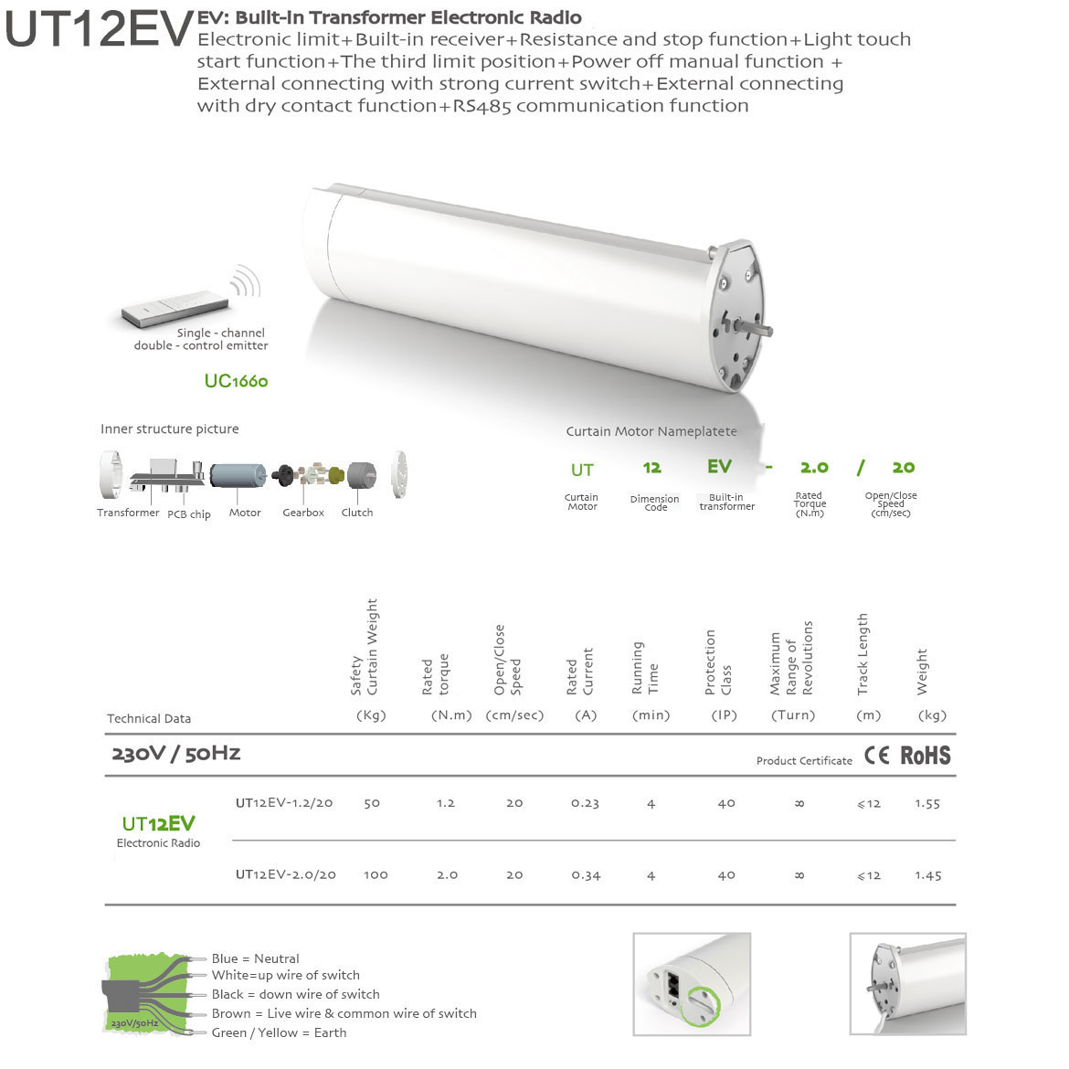 Memorized Limit+Integrated Radio Control+Obstruction Detection+Light touch-start+Manual Override+The third limit position+Compatible with dry contact switch function+Compatible with mains voltage switch+Compatible with hotel room card system+RS485 communication function.