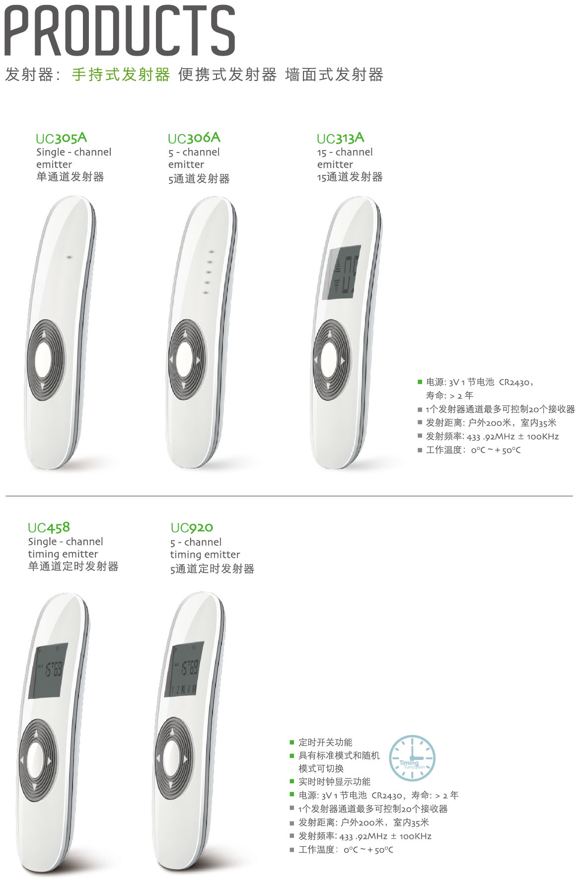 Sing-channel emitter / 單通道發射器 5-channel emitter / 5通道發射器 15-channel emitter / 15通道發射器